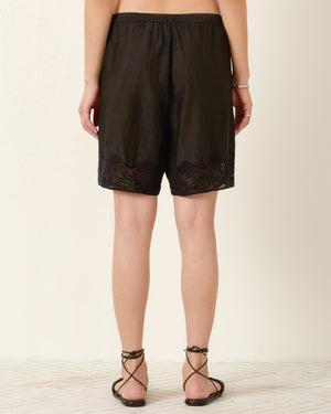 Cut from a cotton-silk blend, this Bermuda short has an elasticated waist and relaxed fit. It's trimmed in tonal cotton lace for a sheer finish.