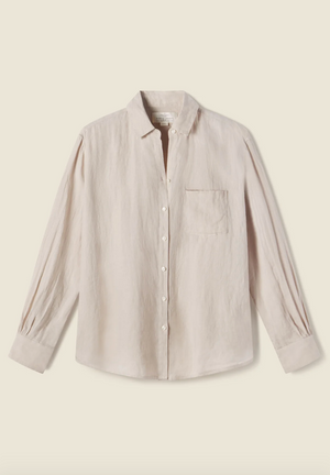 Made in crisp linen, the Blake oversized boyfriend shirt is a button-down meant to live in your wardrobe for years. It truly gets better with each wear, growing softer every wash. This shirt has an oversized boyfriend fit completed with antique white buttons and a single chest pocket.