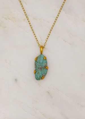 Made from 22k yellow gold, set with 33ct carved turquoise clover set. Handmade by Cathy Waterman in Santa Monica, CA.