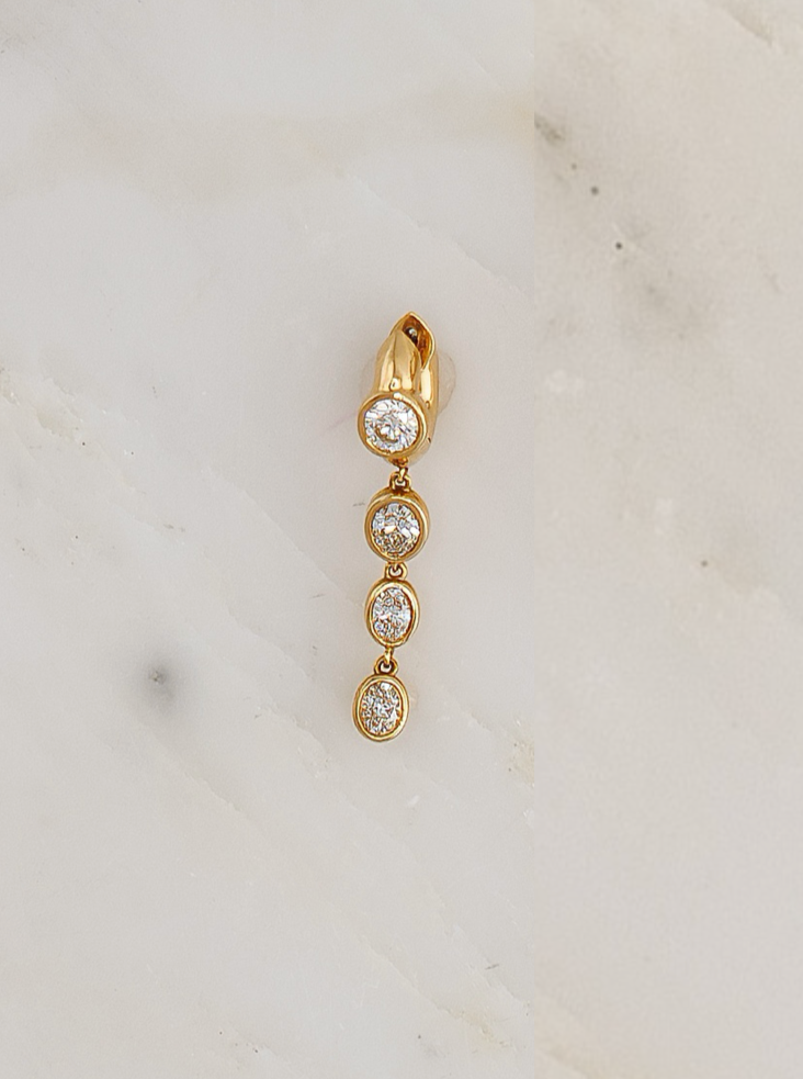 18k yellow gold earring with diamonds. Sold as a single earring.