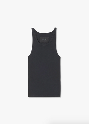 Slim fit rib tank. Bra friendly.
