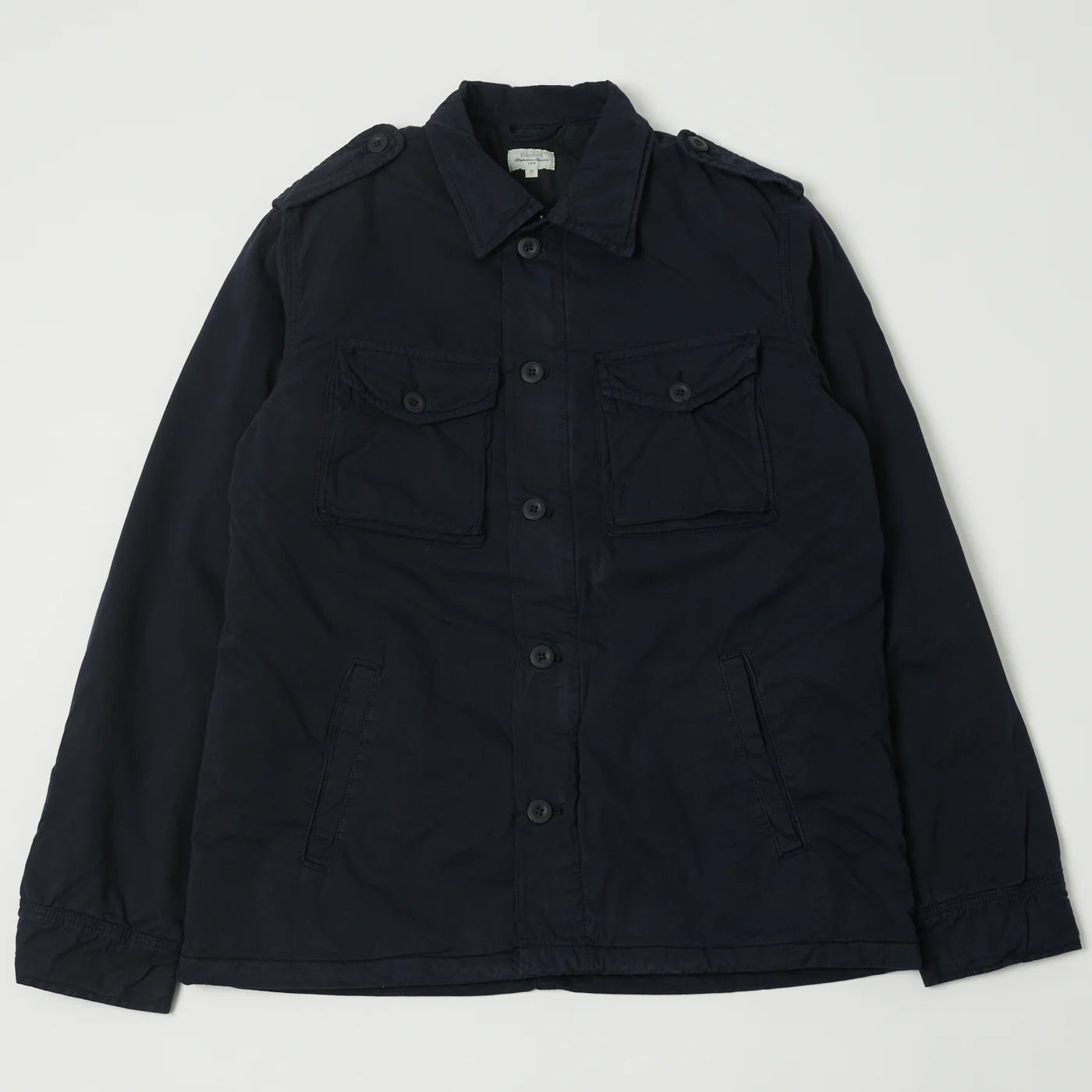 Hartford's military inspired Jonah jacket is designed with a front zipper and button fastening, and two shoulder tabs. Two front buttoned gusset pockets, two front side pockets.