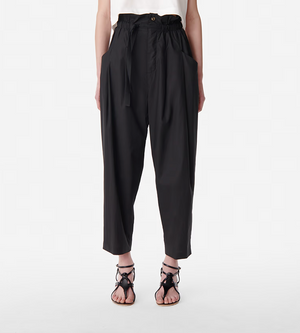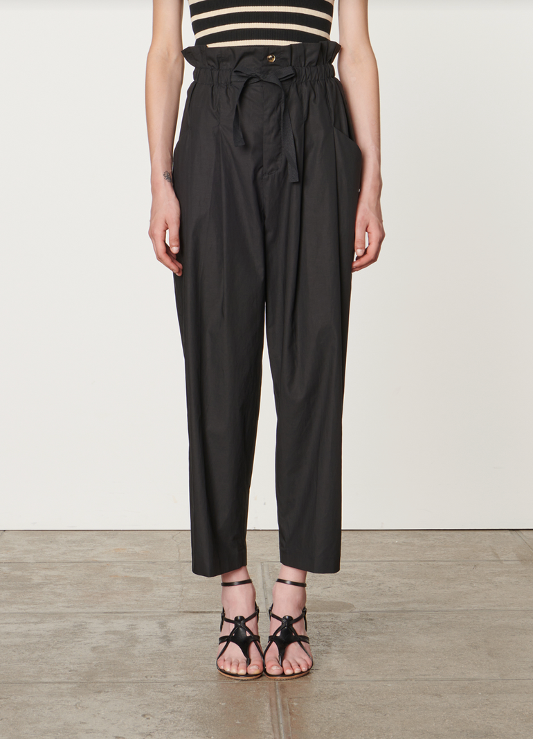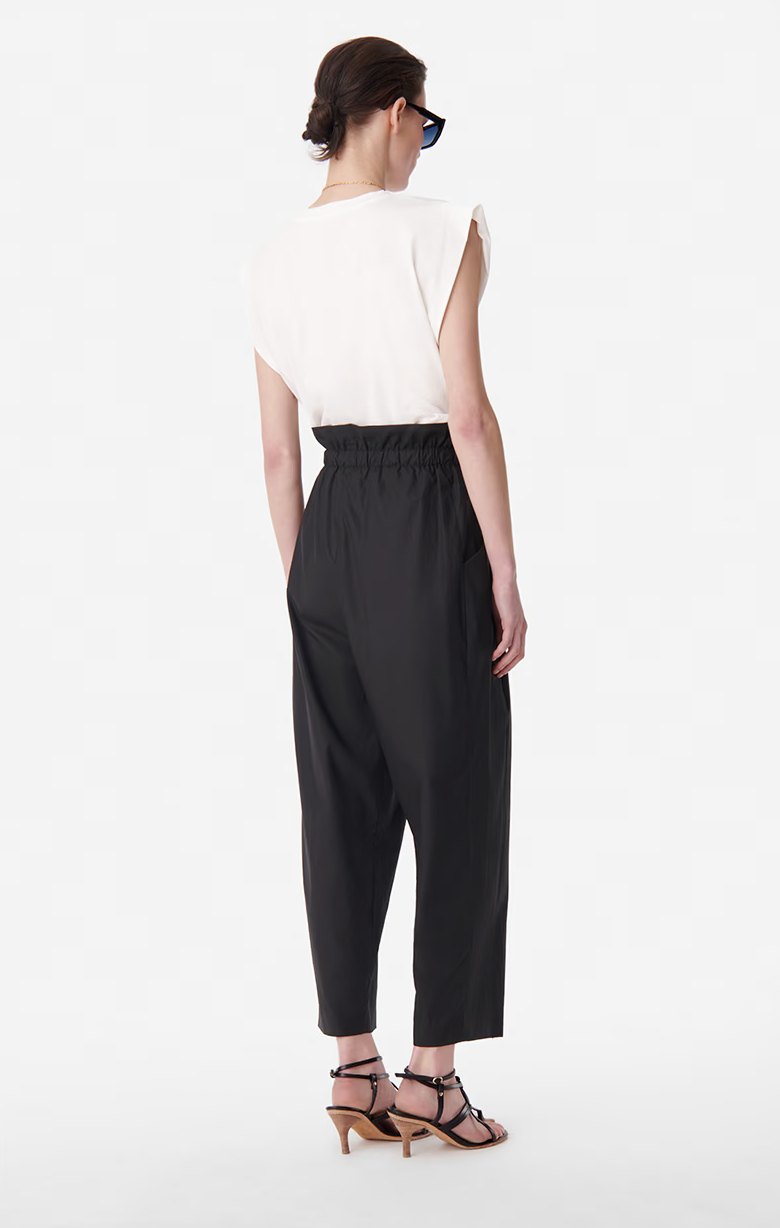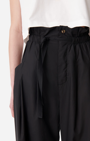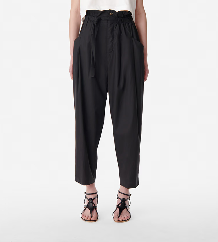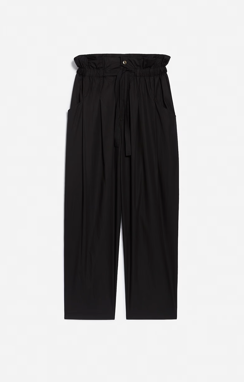 Redesigned quilted trousers made from a light cotton blend fabric, featuring an elasticated waistband and drawstring.