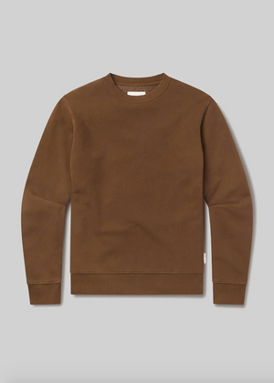 A premium reinterpretation of a total classic, this crewneck is cut from mid-weight sueded fleece in a coffee-toned copper. With its structured fit and lived-in softness, it delivers immediate comfort while retaining a tailored silhouette. Designed to layer or stand alone, it balances easy wearability with elevated casualness.