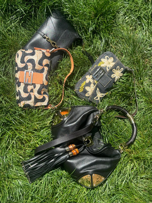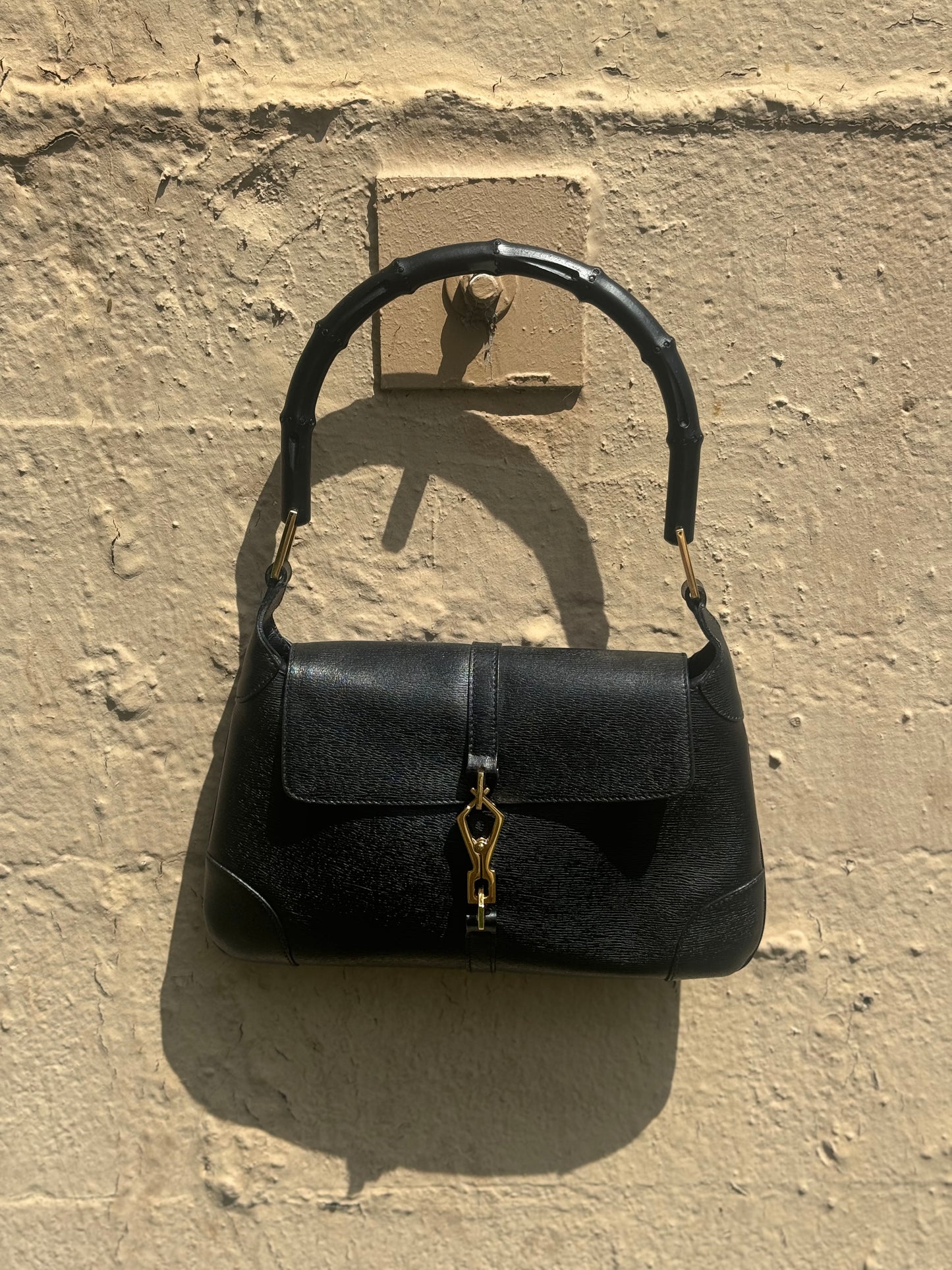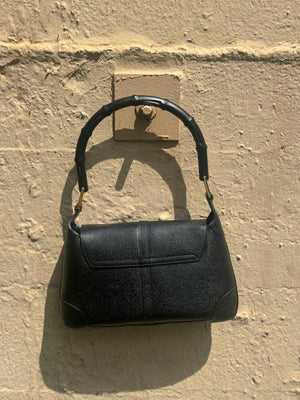 Crafted in Italy from black textured leather, it features the signature curved silhouette, gold-tone piston lock closure, and the house’s coveted bamboo top handle - a detail first introduced in 1947 and still synonymous with Gucci craftsmanship. Perfectly sized for day-to-night wear, it’s a rare vintage find that blends archival charm with modern relevance.