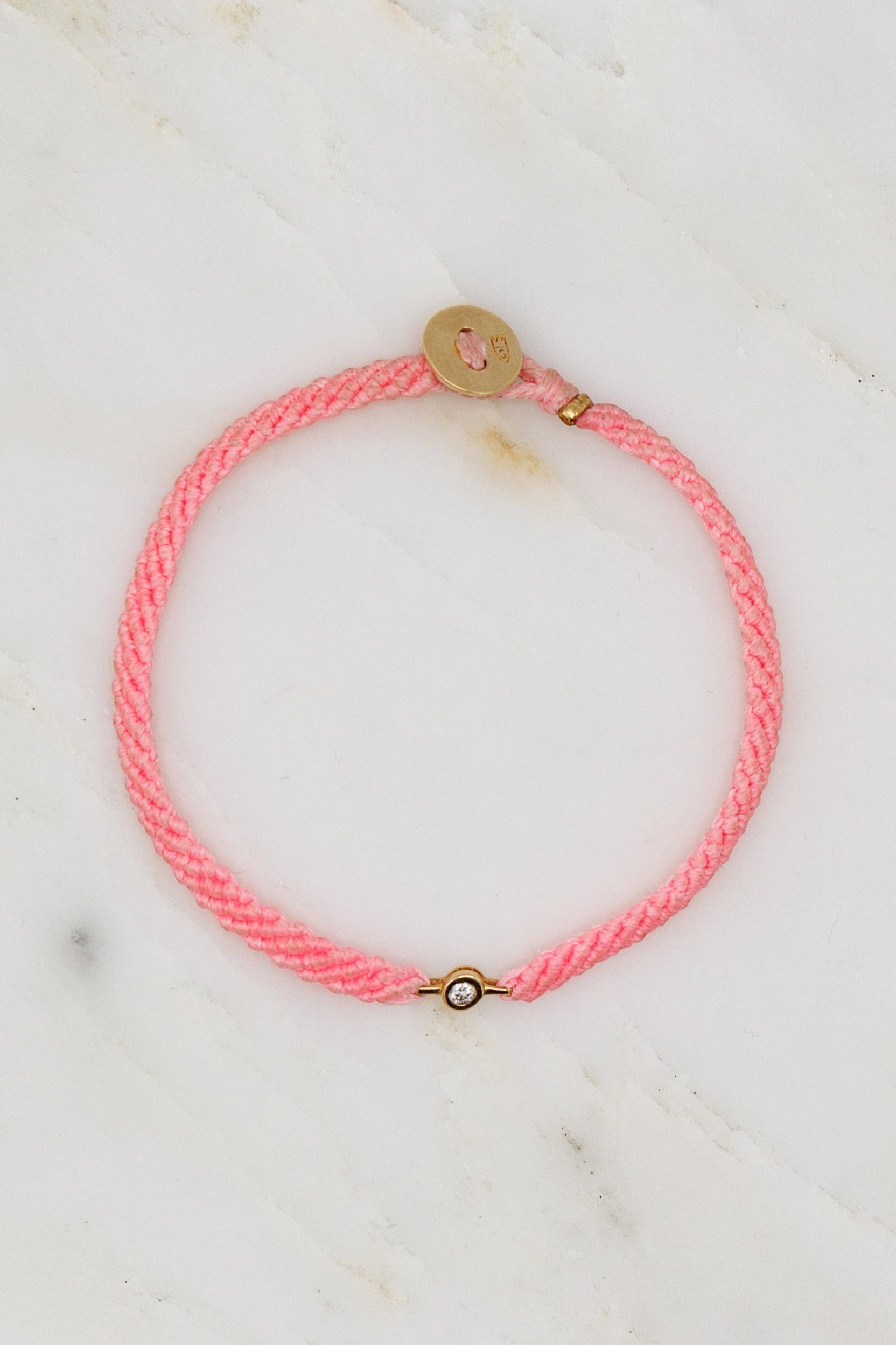 This hand-woven Scosha signature diamond macrame bracelet is crafted from solid gold set with brilliant white diamond on nylon cord, the perfect combination of the ordinary and the extraordinary.