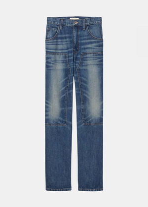 Mid-rise, straight leg jean. Classic welder detailing. Five pocket detail. Zip fly.