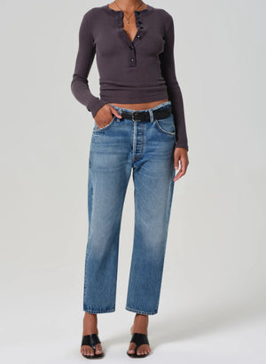 The Winslow sits just above the hip with a chic vintage-inspired leg shape.
