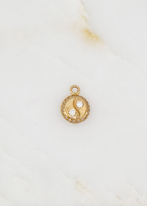 Cast from solid 14k yellow gold set with brilliant white diamonds, soft and subtle texture creates the iconic wave of the yin-yang sign. The tapered band makes for a comfortable fit. A halo of diamonds adds extra dimension and sparkle.